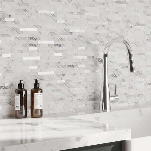 Mit unseren Fliesen auf Matte in Weiß Silber renovieren Sie mühelos jede Wand – ob zu Hause, im Büro oder im Geschäft. Die selbstklebenden Steinpaneele lassen sich einzeln bestellen, einfach zuschneiden und direkt auf alte Wände kleben. Die Kombination aus Weiß, Silber und Marmoroptik sorgt für einen eleganten, modernen Look. Mit nur 0,4 cm Stärke sind die Fliesenmatten besonders platzsparend und ideal für eine schnelle, saubere Wandrenovierung.