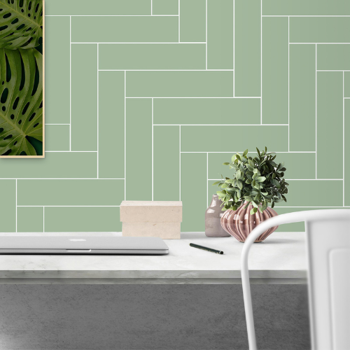 - Flexible Gestaltungsmöglichkeiten: Durch das längliche Format können die Klebefliesen Grün in verschiedenen Mustern verlegt werden zum Beispiel im Fischgrät oder Ziegelverband.
