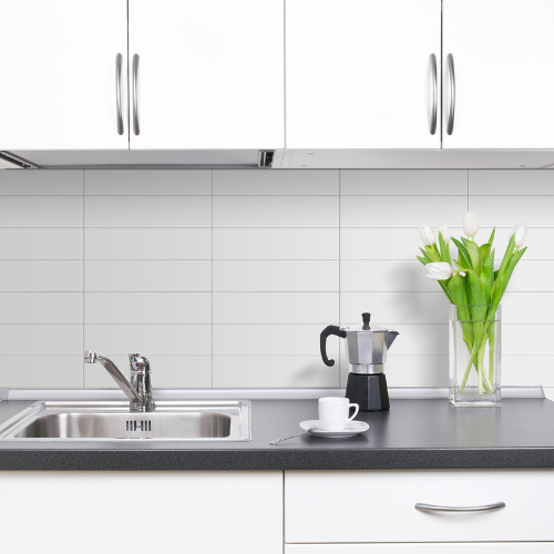 Mit Klebefliesen Weiß gestalten Sie eine helle und moderne Küchenwand. Die weiße Farbe lässt die Küche größer wirken und sorgt für eine ruhige und elegante Atmosphäre. Gleichzeitig sind weiße Klebefliesen sehr pflegeleicht und ideal für den täglichen Gebrauch.