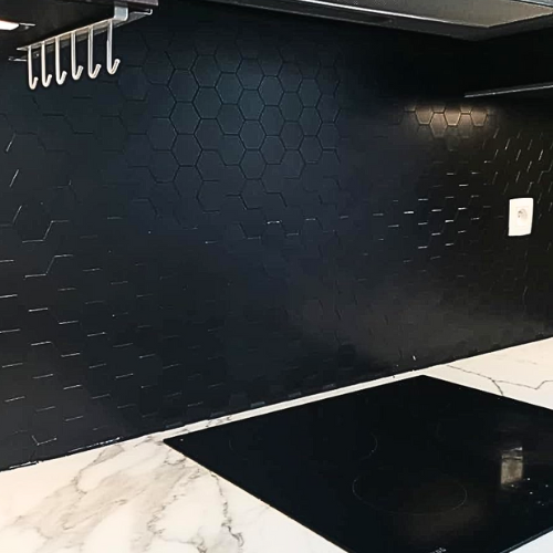 Verleihen Sie Ihrer Küchenwand einen modernen, eleganten Look mit Mosaikfliesen Schwarz. Die selbstklebenden Fliesen sind hitzebeständig, pflegeleicht und ideal für eine schnelle, saubere Küchenrenovierung.