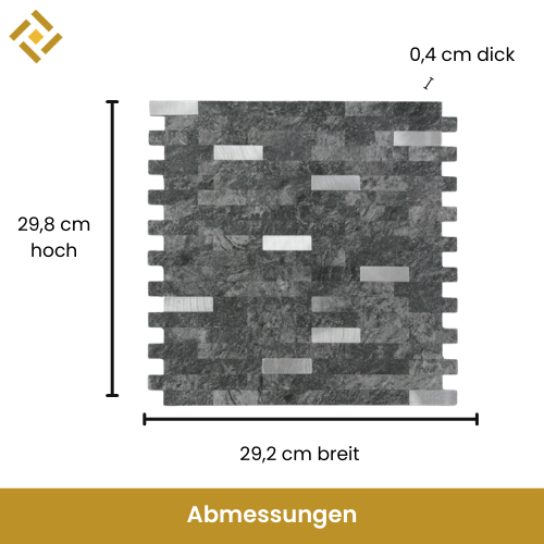 Die selbstklebenden PVC Klebefliesen in Dunkelgrau mit Silberdetails sind ideal für moderne Küchenrückwände. Sie sind hitzebeständig, wasserfest und lassen sich direkt über alte Fliesen kleben. So entsteht schnell eine stilvolle, pflegeleichte Küchenwand.