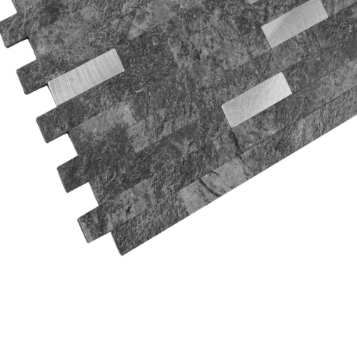 Selbstklebende PVC Fliesenstreifen Dunkelgrau mit Silberakzenten