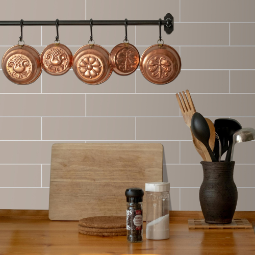 Als Küchenrückwand sind diese selbstklebenden Fliesen Beige besonders praktisch. Die robuste Oberfläche schützt die Wand vor Spritzwasser und kleinen Kratzern während sich Schmutz oder Fett einfach entfernen lassen. Gleichzeitig sorgt die warme Beige Farbe für eine ruhige und elegante Atmosphäre in der Küche.
